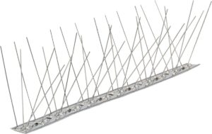 Aghi di acciaio su una base di metallo impediscono ai volatili di posarsi sulle superfici.